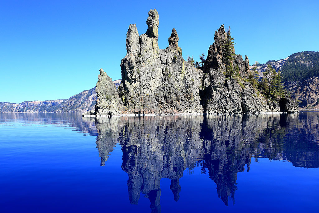 In addition, the lake boasts two islands— the Phantom Ship near the southern rim, which is estimated to be 400,000 years old, and Wizard Island by the western shore, which is larger than its counterpart but mostly underwater. Lastly, offshore has its gems as well. The pinnacles, shard-like volcanic remnants formed from the original eruption’s ash formations, are a must-see to the southeast; you can view them from a dedicated overlook or take the trailhead for an up-close exploration.